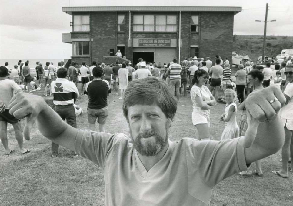 P22316 – Coledale Caravan Park camper Ken Dixon gives the thumbs down to Wollongong City Council’s proposal to close the caravan park, 14 January 1984 Like this:Like Loading...