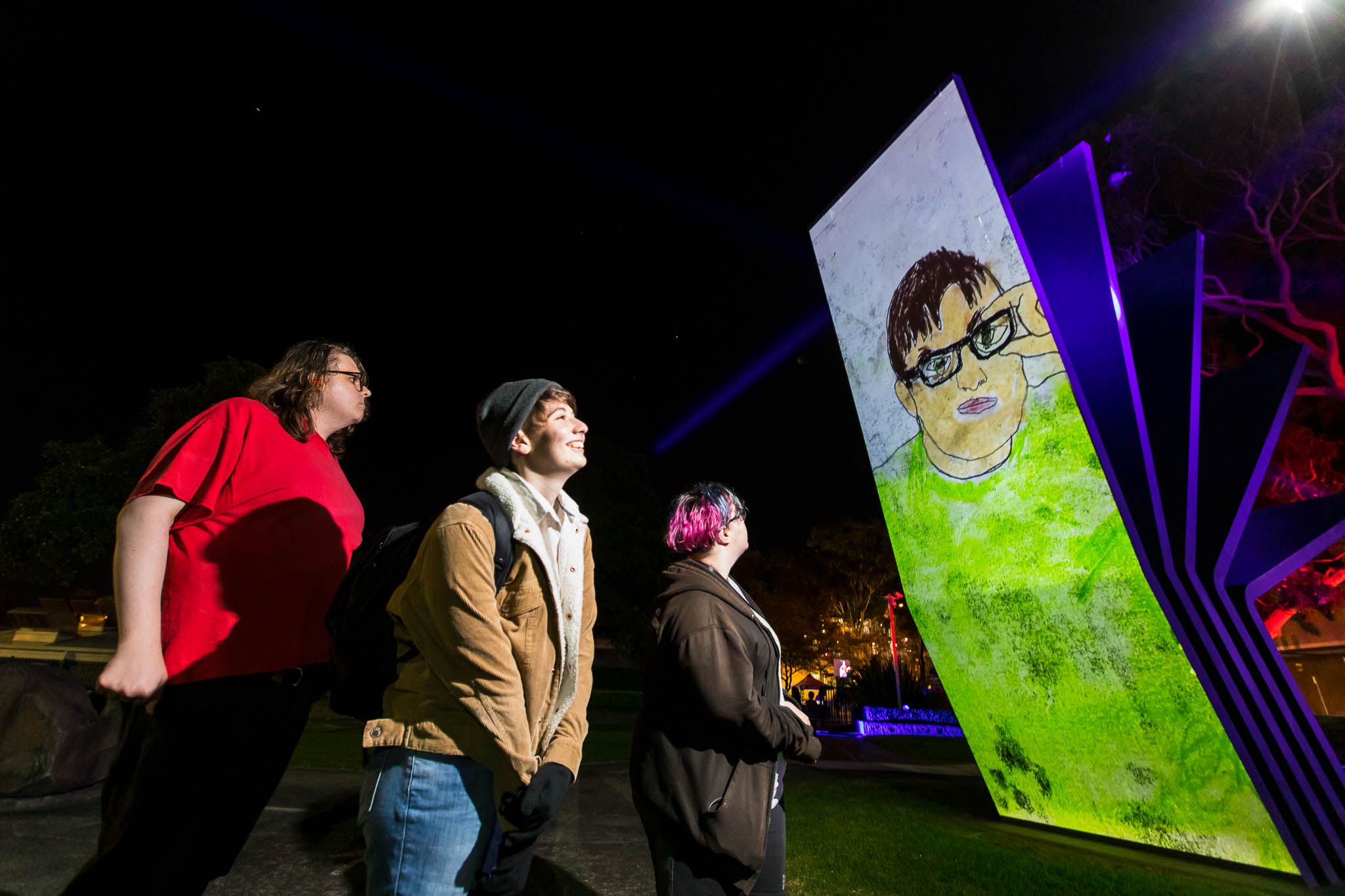 Participants View Light Projections of Mural Artworks